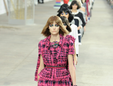 テーマは「アート」。コレクションは89点の大作。全ての構成部品を自身で創造する哲学と、イタリアブランドの持つ完成されたシルエット、カラーリングの美しさが愛されています。 絵の具のパレットをイメージしたカラフルなプリントのシリーズもあり、トロンプルイユのキルティングバッグや巨大なグラスパールのチョーカーなど、捻りを利かせたアイコニックなアクセサリーも楽しい。毎回凝った演出で観客を驚かせるシャネルの2014春夏プレタポルテコレクションは、デザイナーのカール・ラガーフェルドが現代アートを、メゾンのアイコンを使って表現。